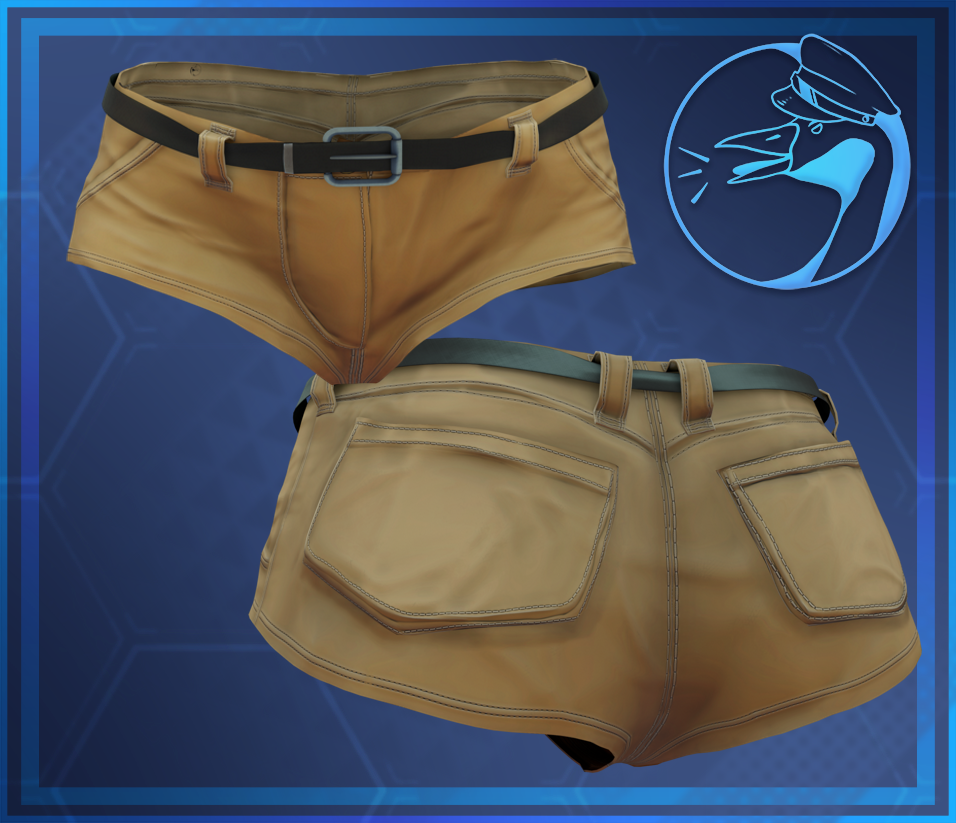 A pair of tight fitting khaki shorts with some stylized texturing. Includes Commercial license.